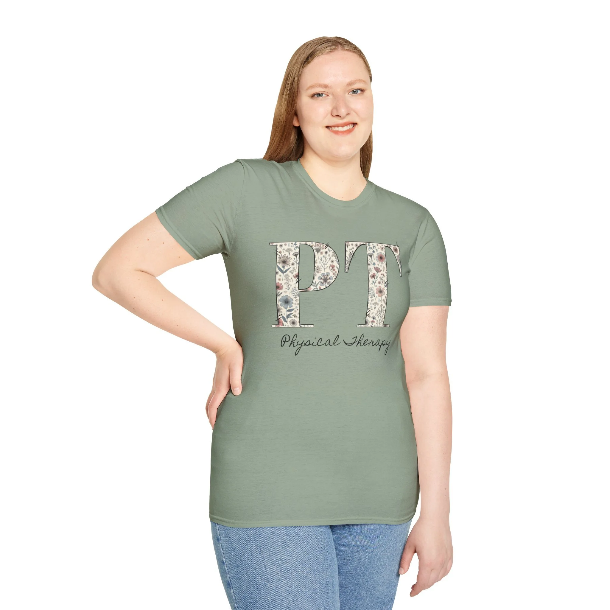 Floral PT Physical Therapy Unisex Softstyle T-Shirt